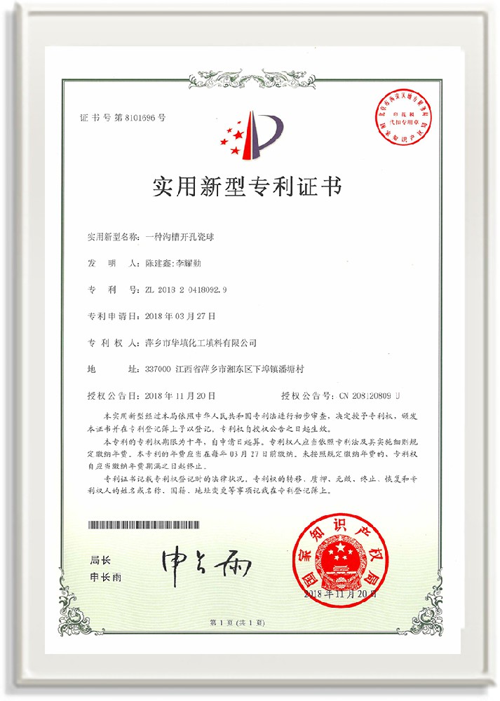 萍鄉市華填化工填料有限公司,位于320國道、109國道、浙贛鐵路、昌金高速公路貫穿其中,交通便利,是江西西部一顆燦爛明珠,創建于20世紀70年代初期,是中國石油天然氣股份有限公司“能源一號網”會員企業、中國石化物資采購電子商務網絡和中國海洋石油總公司采辦業務系統成員單位,是上海大學江西材料基因組工程產業研究院工業陶瓷產業創新聯盟基地,且通過ISO9001:2015質量管理體系、ISO14001:2015環境管理體系、ISO45001:2018職業健康安全管理體系認證的化工填料生產企業。公司擁有陶瓷、塑料、金屬填料、催化劑、活性氧化鋁、分子篩等產品生產線,現有固定資產3616萬元,占地面積3.8萬平方米。公司具有悠久的生產歷史、雄厚的技術力量和先進的生產工藝設備,可生產工業瓷球(支撐劑)、陶瓷、金屬、塑料質的規整、散堆化工填料及分子篩、催化劑、生化濾料、活性氧化鋁、石化助劑、活性炭、環保材料、耐火材料等系列的200多種規格型號產品。